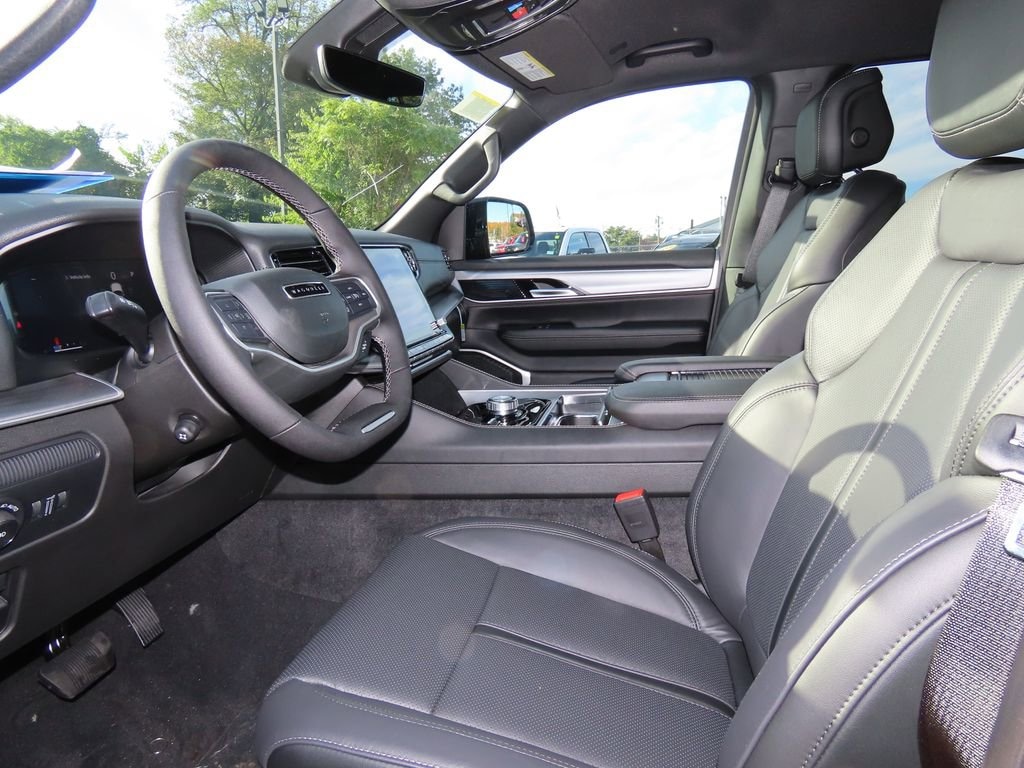 ABS brakes, Active Cruise Control, Alloy wheels, Compass, Electronic Stability Control, Front Bucket Seats, Front dual zone A/C, Heated door mirrors, Heated Exterior Mirrors, Heated front seats, Heated rear seats, Illuminated entry, Low tire pressure warning, Navigation System, ParkView Rear Back-Up Camera, Power Liftgate, Power passenger seat, Rear dual zone A/C, Remote keyless entry, Split folding rear seat, Traction control, Ventilated front seats, 10 Speakers, 118 MPH Maximum Speed Calibration, 3.55 Rear Axle Ratio, 3rd row seats: bench, 4-Wheel Disc Brakes, Air Conditioning, AM/FM radio: SiriusXM with 360L, Anti-whiplash front head restraints, Apple CarPlay/Android Auto, Audio memory, Auto Adjust In Reverse Exterior Mirrors, Auto-dimming door mirrors, Auto-Dimming Exterior Driver Mirror, Auto-dimming Rear-View mirror, Auto-leveling suspension, Automatic temperature control, Brake assist, Bumpers: body-color, Delay-off headlights, Driver door bin, Driver vanity mirror, Driver's Seat Mounted Armrest, Dual front impact airbags, Dual front side impact airbags, Emergency communication system: Jeep Connect, Exterior Mirrors Approach Lamps, Exterior Mirrors w/Memory, Exterior Mirrors w/Supplemental Signals, Four wheel independent suspension, Front anti-roll bar, Front Center Armrest w/Storage, Front fog lights, Front reading lights, Fully automatic headlights, Garage door transmitter, Genuine wood console insert, Genuine wood dashboard insert, Genuine wood door panel insert, Heated steering wheel, Knee airbag, Leather Trimmed Bucket Seats, Memory seat, Normal Duty Suspension, Occupant sensing airbag, Outside temperature display, Overhead airbag, Overhead console, Panic alarm, Passenger door bin, Passenger seat mounted armrest, Passenger vanity mirror, Power adjustable front head restraints, Power door mirrors, Power driver seat, Power steering, Power windows, Radio data system, Radio: Uconnect 5 Nav w/10.1" Display, Rain sensing wipers, Rear air conditioning, Rear anti-roll bar, Rear reading lights, Rear seat center armrest, Rear window defroster, Rear window wiper, Reclining 3rd row seat, Security system, Speed control, Speed-sensing steering, Speed-Sensitive Wipers, Steering wheel memory, Steering wheel mounted audio controls, Tachometer, Telescoping steering wheel, Tilt steering wheel, Trip computer, Turn signal indicator mirrors, Variably intermittent wipers, Voltmeter, and Wheels: 20" x 9.0" Premium 2 Aluminum