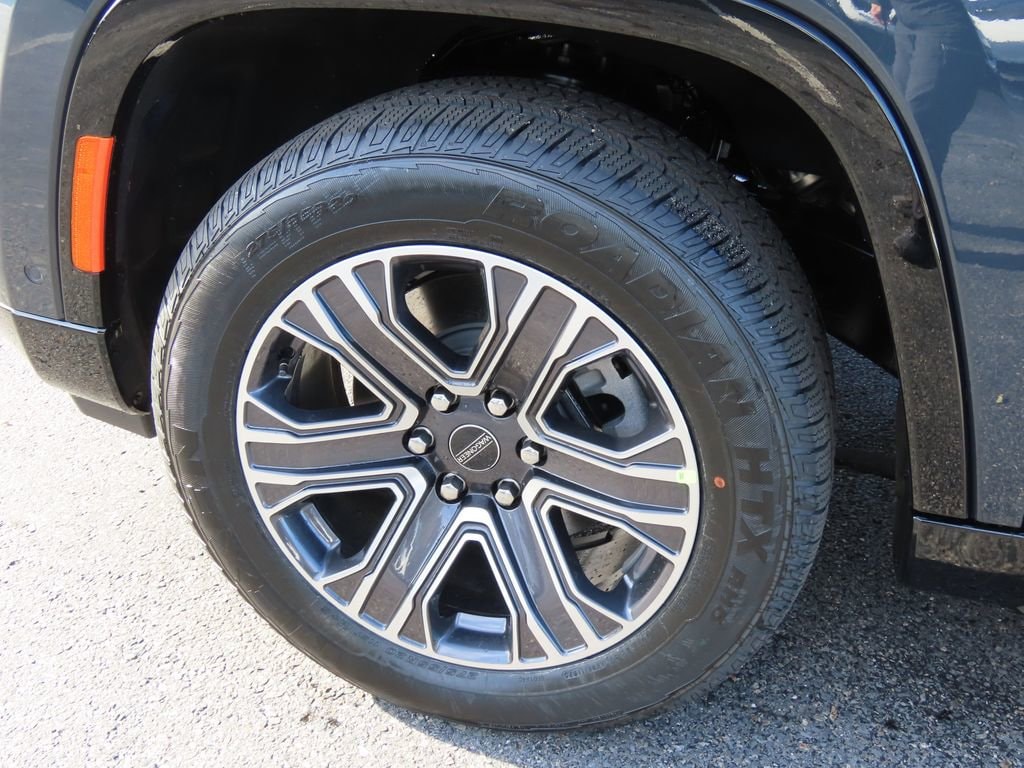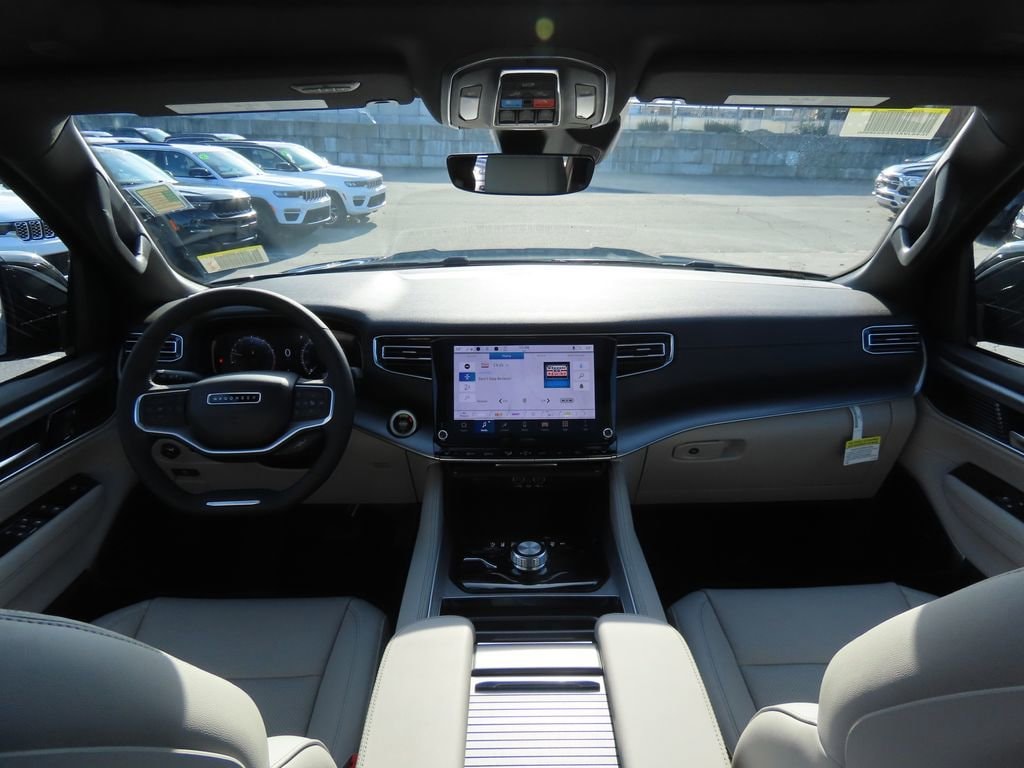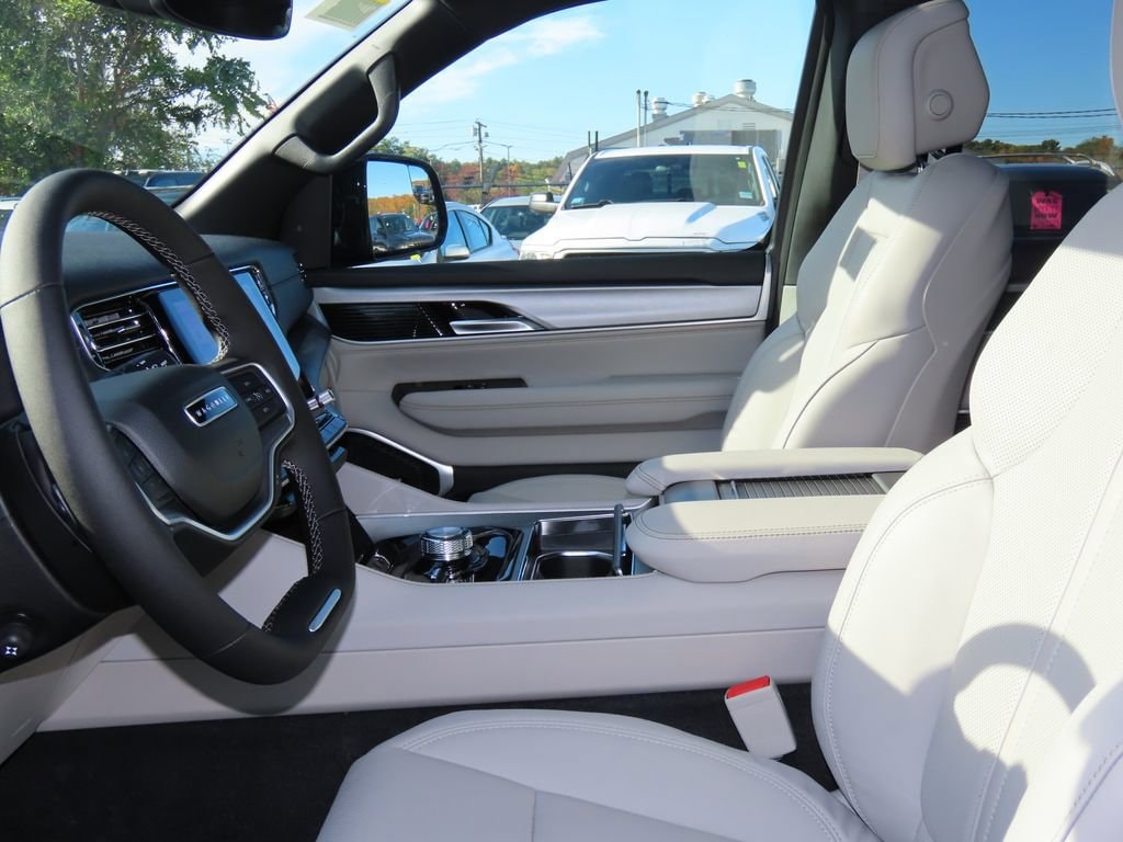 Premium Group I (3 Panel Sunroof, Adjustable Roof Rail Crossbars, Cargo Cover, and Reversible Carpet/Vinyl Cargo Mat), Quick Order Package 25E, 10 Speakers, 3.55 Rear Axle Ratio, 3rd row seats: bench, 4-Wheel Disc Brakes, ABS brakes, Air Conditioning, Alloy wheels, AM/FM radio: SiriusXM with 360L, Anti-whiplash front head restraints, Apple CarPlay/Android Auto, Audio memory, Auto Adjust In Reverse Exterior Mirrors, Auto-dimming door mirrors, Auto-Dimming Exterior Driver Mirror, Auto-dimming Rear-View mirror, Auto-leveling suspension, Automatic temperature control, Brake assist, Bumpers: body-color, Compass, Delay-off headlights, Driver door bin, Driver vanity mirror, Driver's Seat Mounted Armrest, Dual front impact airbags, Dual front side impact airbags, Electronic Stability Control, Emergency communication system: Jeep Connect, Exterior Mirrors Approach Lamps, Exterior Mirrors w/Memory, Exterior Mirrors w/Supplemental Signals, Four wheel independent suspension, Front anti-roll bar, Front Bucket Seats, Front Center Armrest w/Storage, Front dual zone A/C, Front fog lights, Front License Plate Bracket, Front reading lights, Fully automatic headlights, Garage door transmitter, Heated door mirrors, Heated Exterior Mirrors, Heated front seats, Heated steering wheel, Illuminated entry, Knee airbag, Leather Trimmed Bucket Seats, Low tire pressure warning, Memory seat, Navigation System, Normal Duty Suspension, Occupant sensing airbag, Outside temperature display, Overhead airbag, Overhead console, Panic alarm, ParkView Rear Back-Up Camera, Passenger door bin, Passenger seat mounted armrest, Passenger vanity mirror, Power adjustable front head restraints, Power door mirrors, Power driver seat, Power Liftgate, Power passenger seat, Power steering, Power windows, Radio data system, Radio: Uconnect 5 Nav w/10.1" Display, Rear air conditioning, Rear anti-roll bar, Rear dual zone A/C, Rear reading lights, Rear seat center armrest, Rear window defroster, Rear window wiper, Reclining 3rd row seat, Remote keyless entry, Security system, Speed control, Speed-sensing steering, Speed-Sensitive Wipers, Split folding rear seat, Steering wheel memory, Steering wheel mounted audio controls, Tachometer, Telescoping steering wheel, Tilt steering wheel, Traction control, Trip computer, Turn signal indicator mirrors, Variably intermittent wipers, Ventilated front seats, Voltmeter, and Wheels: 20" x 9.0" Premium 2 Aluminum