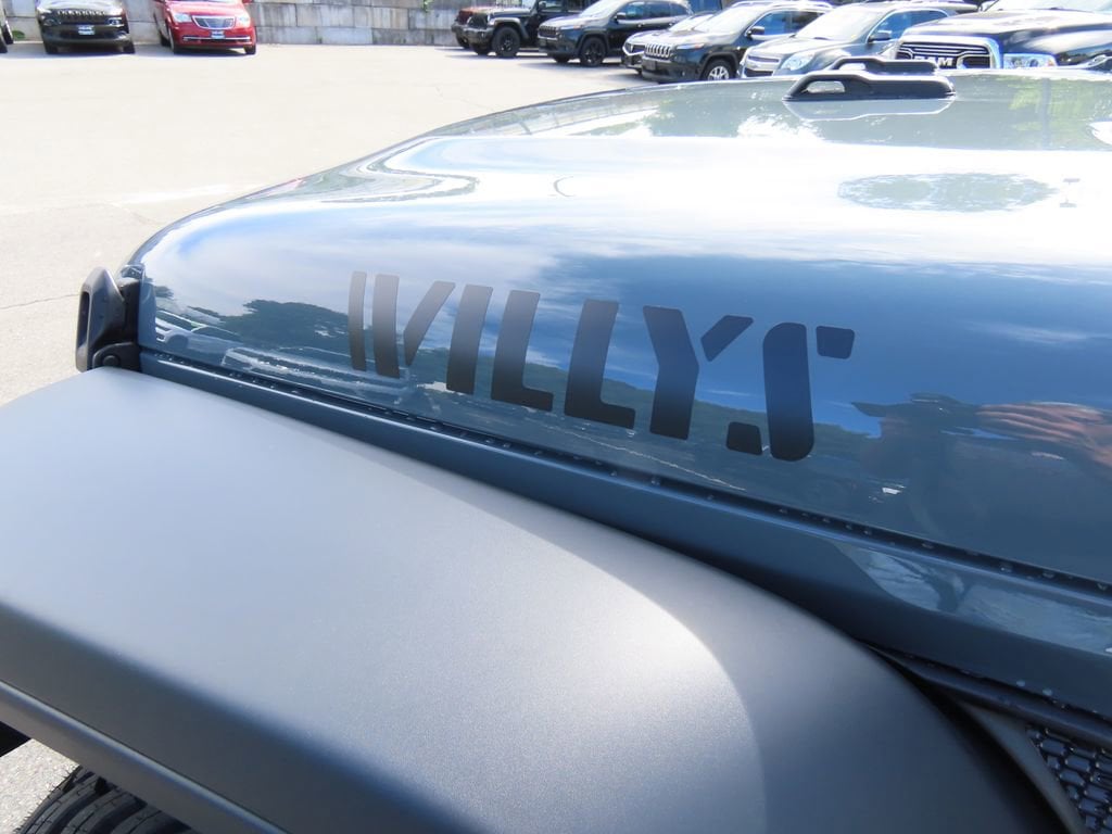 Convenience Group (2-Door Passive Entry, Front Door Locks, Air Conditioning w/Auto Temperature Control, Air Filtering, Cluster 7.0" TFT Color Display, Emergency/Assistance Call, Heated Front Seats, Heated Steering Wheel, Remote Start System, and Universal Garage Door Opener), Quick Order Package 24W Willys (4-Wheel Drive Swing Gate Decal, 7 & 4 Pin Wiring Harness, 97 MPH Vehicle Max Speed Calibration, Advanced Brake Assist, Automatic Headlamps, Auxiliary Switches, Black Grille, Class II Receiver Hitch, Conventional Differential Front Axle, Corning Gorilla Glass, Dana M210 Wide HD Tube Front Axle, Dana M220 Wide Rear Axle, Daytime Running Lamps LED Accents, Deep Tint Sunscreen Windows, E-Locker Rear Axle, Enhanced Adaptive Cruise Control, Front LED Fog Lamps, Full Speed Forward Collision Warning Plus, Injection Molded Black Rear Bumper, LED Premium Reflector Headlamps, Mold In Color Bumper w/Gloss Black, Molded in Color Rubicon Highline Flare, MOPAR All-Weather Floor Mats, Off-Road Plus Mode, Power Heated Mirrors, Premium Wrapped Steering Wheel, Security Alarm, Sun Visors w/Illuminated Vanity Mirrors, Wheels: 17" x 7.5" Painted Black, Willy's Suspension, and Willys Hood Decal), 110 MPH Vehicle Max Speed Calibration, 4-Wheel Disc Brakes, 8 Speakers, ABS brakes, Air Conditioning, AM/FM radio: SiriusXM, Apple CarPlay/Android Auto, Aux Battery, Black MOPAR Perforated Leather, Brake assist, Cloth Low-Back Bucket Seats, Compass, Delay-off headlights, Driver door bin, Driver vanity mirror, Dual front impact airbags, Dual front side impact airbags, Electronic Stability Control, Front anti-roll bar, Front Bucket Seats, Front Center Armrest w/Storage, Front fog lights, Front reading lights, Illuminated entry, Integrated roll-over protection, Low tire pressure warning, Non-Lock Fuel Cap w/o Discriminator, Normal Duty Suspension, Occupant sensing airbag, Outside temperature display, Overhead airbag, Panic alarm, ParkView Rear Back-Up Camera, Passenger door bin, Passenger vanity mirror, Power steering, Power Top Quarter Window Storage Bag, Power windows, Radio data system, Radio: Uconnect 5 w/12.3" Display, Rear anti-roll bar, Rear reading lights, Rear Window Defroster, Rear Window Wiper/Washer, Remote keyless entry, Removable Rear Quarter Windows, Sky 1-Touch Power Top, Speed control, Split folding rear seat, Steering wheel mounted audio controls, Stop-Start Dual Battery System, Tachometer, Telescoping steering wheel, Tilt steering wheel, Traction control, Trip computer, Variably intermittent wipers, and Wheels: 17" x 7.5" Black Steel Styled
