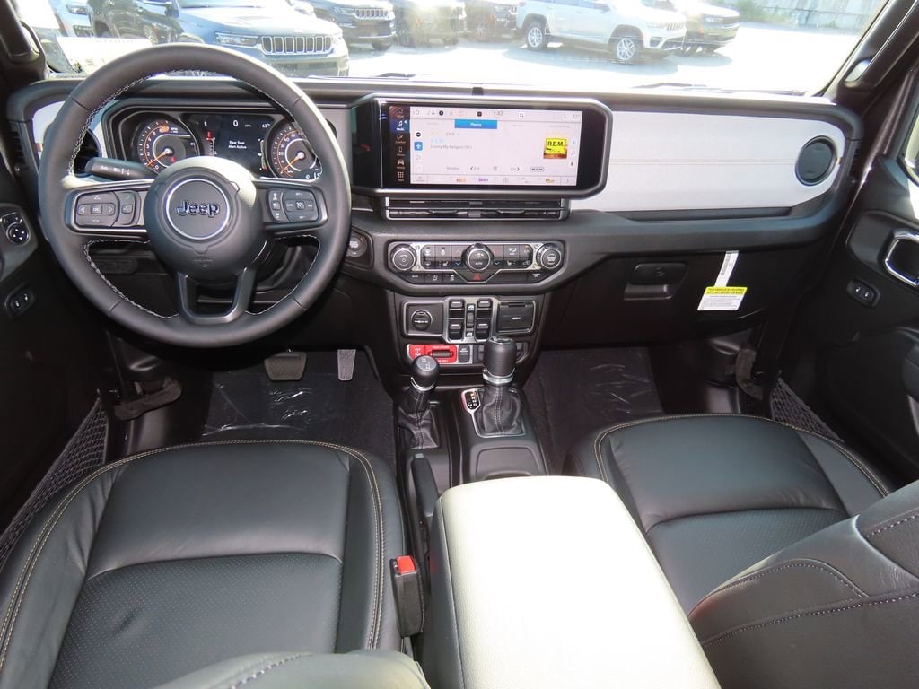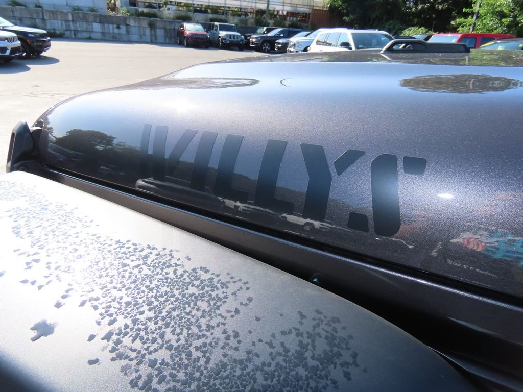 Convenience Group (2-Door Passive Entry, Front Door Locks, Air Conditioning w/Auto Temperature Control, Air Filtering, Cluster 7.0" TFT Color Display, Emergency/Assistance Call, Heated Front Seats, Heated Steering Wheel, Remote Start System, and Universal Garage Door Opener), Quick Order Package 24W Willys (4-Wheel Drive Swing Gate Decal, 7 & 4 Pin Wiring Harness, 97 MPH Vehicle Max Speed Calibration, Advanced Brake Assist, Automatic Headlamps, Auxiliary Switches, Black Grille, Class II Receiver Hitch, Conventional Differential Front Axle, Corning Gorilla Glass, Dana M210 Wide HD Tube Front Axle, Dana M220 Wide Rear Axle, Daytime Running Lamps LED Accents, Deep Tint Sunscreen Windows, E-Locker Rear Axle, Enhanced Adaptive Cruise Control, Front LED Fog Lamps, Full Speed Forward Collision Warning Plus, Injection Molded Black Rear Bumper, LED Premium Reflector Headlamps, Mold In Color Bumper w/Gloss Black, Molded in Color Rubicon Highline Flare, MOPAR All-Weather Floor Mats, Off-Road Plus Mode, Power Heated Mirrors, Premium Wrapped Steering Wheel, Security Alarm, Sun Visors w/Illuminated Vanity Mirrors, Wheels: 17" x 7.5" Painted Black, Willy's Suspension, and Willys Hood Decal), 110 MPH Vehicle Max Speed Calibration, 4-Wheel Disc Brakes, 8 Speakers, ABS brakes, Air Conditioning, AM/FM radio: SiriusXM, Apple CarPlay/Android Auto, Aux Battery, Black MOPAR Perforated Leather, Brake assist, Cloth Low-Back Bucket Seats, Compass, Delay-off headlights, Driver door bin, Driver vanity mirror, Dual front impact airbags, Dual front side impact airbags, Electronic Stability Control, Front anti-roll bar, Front Bucket Seats, Front Center Armrest w/Storage, Front fog lights, Front reading lights, Illuminated entry, Integrated roll-over protection, Low tire pressure warning, Non-Lock Fuel Cap w/o Discriminator, Normal Duty Suspension, Occupant sensing airbag, Outside temperature display, Overhead airbag, Panic alarm, ParkView Rear Back-Up Camera, Passenger door bin, Passenger vanity mirror, Power steering, Power windows, Radio data system, Radio: Uconnect 5 w/12.3" Display, Rear anti-roll bar, Rear reading lights, Remote keyless entry, Speed control, Split folding rear seat, Steering wheel mounted audio controls, Stop-Start Dual Battery System, Tachometer, Telescoping steering wheel, Tilt steering wheel, Traction control, Trip computer, Variably intermittent wipers, and Wheels: 17" x 7.5" Black Steel Styled