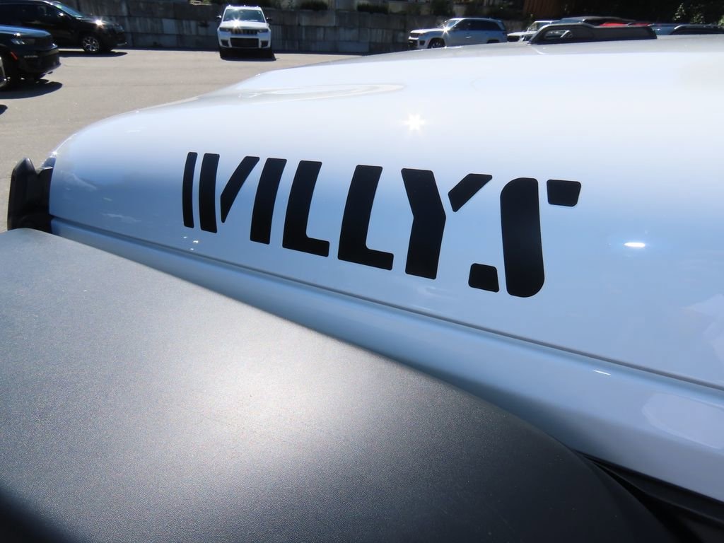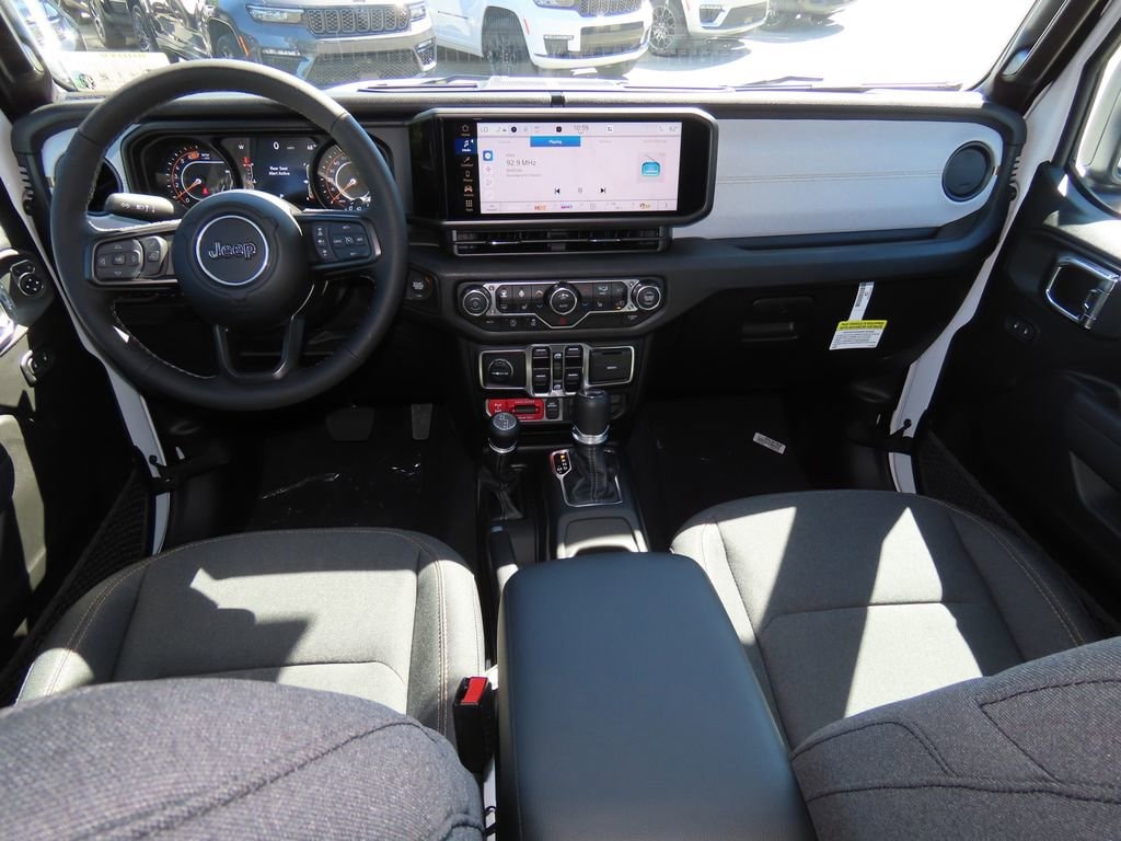 Convenience Group (2-Door Passive Entry, Front Door Locks, Air Conditioning w/Auto Temperature Control, Air Filtering, Cluster 7.0" TFT Color Display, Emergency/Assistance Call, Heated Front Seats, Heated Steering Wheel, Remote Start System, and Universal Garage Door Opener), Quick Order Package 24W Willys (97 MPH Vehicle Max Speed Calibration, Injection Molded Black Rear Bumper, and Molded in Color Rubicon Highline Flare), Xtreme 35" Tire Package (35" Tire Suspension, 4.56 Rear Axle Ratio, Anti-Lock 4-Wheel Disc Perf Brakes, MOPAR Hinge-Gate Reinforcement, Wheel Flare Extensions, and Wheels: 17" x 8" Machined w/Black Pockets), 110 MPH Vehicle Max Speed Calibration, 3.45 Overall Top Gear Ratio, 4-Wheel Disc Brakes, 8 Speakers, ABS brakes, Air Conditioning, AM/FM radio: SiriusXM, Apple CarPlay/Android Auto, Aux Battery, Black 3-Piece Hard Top, Brake assist, Cloth Low-Back Bucket Seats, Compass, Delay-off headlights, Driver door bin, Driver vanity mirror, Dual front impact airbags, Dual front side impact airbags, Electronic Stability Control, Freedom Panel Storage Bag, Front anti-roll bar, Front Bucket Seats, Front Center Armrest w/Storage, Front fog lights, Front reading lights, Illuminated entry, Integrated roll-over protection, Low tire pressure warning, Non-Lock Fuel Cap w/o Discriminator, Normal Duty Suspension, Occupant sensing airbag, Outside temperature display, Overhead airbag, Panic alarm, ParkView Rear Back-Up Camera, Passenger door bin, Passenger vanity mirror, Power steering, Power windows, Radio data system, Radio: Uconnect 5 w/12.3" Display, Rear anti-roll bar, Rear reading lights, Rear Window Defroster, Rear Window Wiper/Washer, Remote keyless entry, Speed control, Split folding rear seat, Steering wheel mounted audio controls, Stop-Start Dual Battery System, Tachometer, Telescoping steering wheel, Tilt steering wheel, Traction control, Trip computer, Variably intermittent wipers, and Wheels: 17" x 7.5" Black Steel Styled