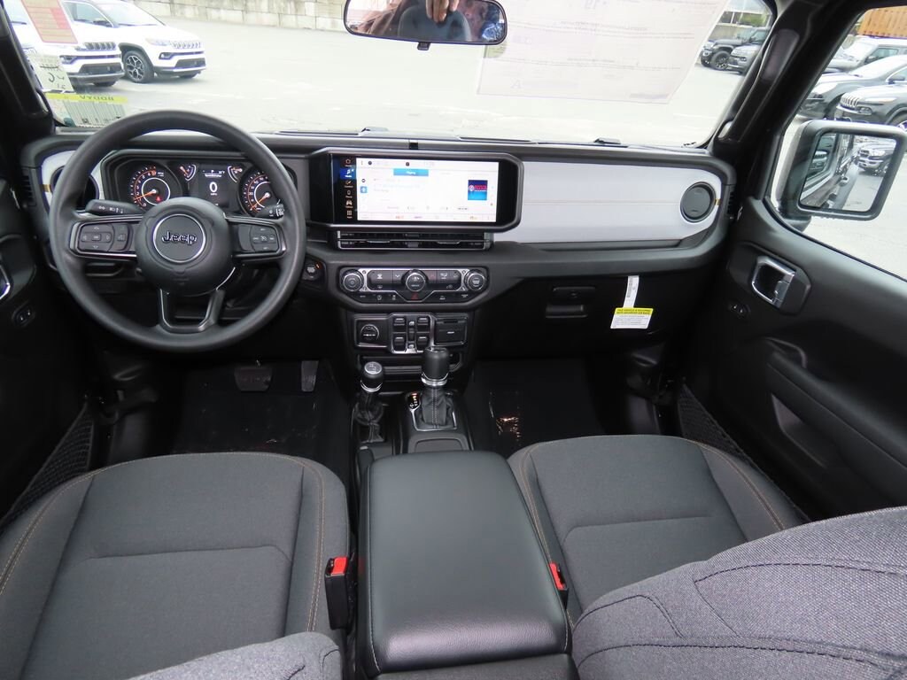 Quick Order Package 24B Sport, 110 Mph Vehicle Max Speed Calibration, 12.3" Touchscreen Display, 3.73 Rear Axle Ratio, 4-Wheel Disc Brakes, 4G LTE Wi-Fi Hot Spot, 8 Speakers, ABS brakes, Air Conditioning, Alexa Built-in, AM/FM radio: SiriusXM with 360L, Apple CarPlay, Apple CarPlay/Android Auto, Black 3-Piece Hard Top, Brake assist, Compass, Connectivity - US/Canada, Delay-off headlights, Driver door bin, Driver vanity mirror, Dual front impact airbags, Dual front side impact airbags, Electronic Stability Control, Freedom Panel Storage Bag, Front anti-roll bar, Front Bucket Seats, Front Center Armrest w/Storage, Front fog lights, Front License Plate Bracket, Front reading lights, Google Android Auto, Illuminated entry, Integrated roll-over protection, Low tire pressure warning, MOPAR All-Weather Slush Mats, MOPAR Spray in Bedliner, Normal Duty Suspension, Occupant sensing airbag, Outside temperature display, Overhead airbag, Panic alarm, ParkView Rear Back-Up Camera, Passenger door bin, Passenger vanity mirror, Power steering, Power windows, Radio data system, Radio: Uconnect 5 with 12.3" Display, Rear anti-roll bar, Rear reading lights, Rear Sliding Window, Rear Window Defroster, Remote keyless entry, Speed control, Split folding rear seat, Steering wheel mounted audio controls, Tachometer, Telescoping steering wheel, Tilt steering wheel, Traction control, Trip computer, USB Host Flip, Variably intermittent wipers, Voltmeter, and Wheels: 17" x 7.5" Black Steel Styled