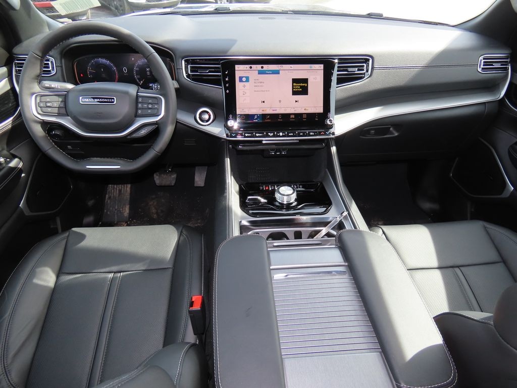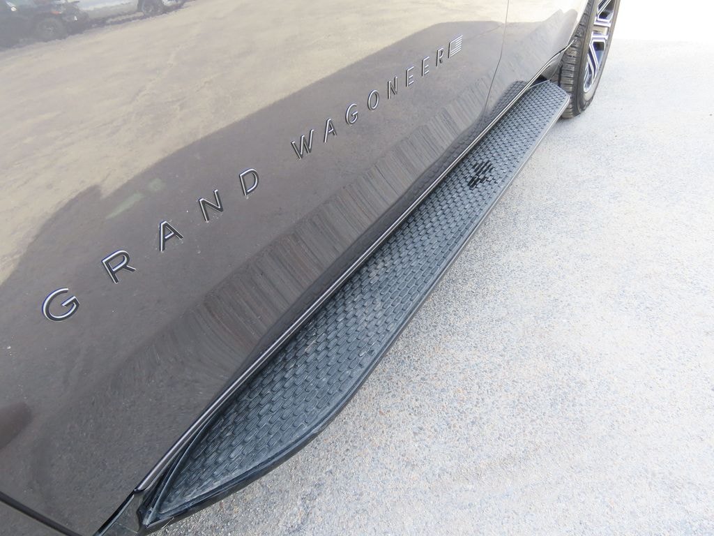 Premium Group I (3 Panel Sunroof, 3rd Row 60/40 Power Recline Seat, Auto Adjust in Reverse Exterior Mirrors, Auto Power Folding Exterior Mirrors, Auto Power Folding Mirrors, Auto-Dimming Exterior Driver Mirror, Cargo Cover, Exterior Mirrors Approach Lamps, Exterior Mirrors with Memory, Exterior Mirrors with Supplemental Signals, Heated Exterior Mirrors, Interior Rear Facing Camera, Luxury Front and Rear Floor Mats, P and P Park and Unpark Assist with Stop System, Reversible Carpet/Vinyl Cargo Mat, Side Distance Warning, and Surround View Camera System), Quick Order Package 29E Grand Wagoneer, 118 Mph Maximum Speed Calibration, 3.55 Rear Axle Ratio, 3rd row seats: bench, 4-Wheel Disc Brakes, 9 Speakers, ABS brakes, Air Conditioning, Alloy wheels, AM/FM radio: SiriusXM with 360L, Anti-whiplash front head restraints, Apple CarPlay/Android Auto, Audio memory, Auto High-beam Headlights, Auto-dimming door mirrors, Auto-dimming Rear-View mirror, Auto-leveling suspension, Automatic temperature control, Black Exterior Accents, Brake assist, Bumpers: body-color, Compass, Delay-off headlights, Driver door bin, Driver vanity mirror, Driver's Seat Mounted Armrest, Dual front impact airbags, Dual front side impact airbags, Electronic Stability Control, Emergency communication system: Jeep Connect, Exterior Parking Camera Rear, Four wheel independent suspension, Front anti-roll bar, Front Bucket Seats, Front Center Armrest w/Storage, Front dual zone A/C, Front fog lights, Front reading lights, Fully automatic headlights, Garage door transmitter, Heated door mirrors, Heated front seats, Heated steering wheel, Illuminated entry, Knee airbag, Low tire pressure warning, Memory seat, Navigation System, Normal Duty Suspension, Occupant sensing airbag, Outside temperature display, Overhead airbag, Overhead console, Panic alarm, Passenger door bin, Passenger seat mounted armrest, Passenger vanity mirror, Power door mirrors, Power driver seat, Power Liftgate, Power passenger seat, Power steering, Power windows, Radio data system, Radio: Uconnect 5 Nav with 12.0" Display, Rain sensing wipers, Rear air conditioning, Rear anti-roll bar, Rear reading lights, Rear seat center armrest, Rear window defroster, Rear window wiper, Reclining 3rd row seat, Remote keyless entry, Security system, Speed control, Speed-sensing steering, Speed-Sensitive Wipers, Split folding rear seat, Steering wheel memory, Steering wheel mounted audio controls, Tachometer, Telescoping steering wheel, Tilt steering wheel, Traction control, Trip computer, Turn signal indicator mirrors, Variably intermittent wipers, Ventilated front seats, Voltmeter, and Wheels: 20" x 9" Machine Face Painted Aluminum