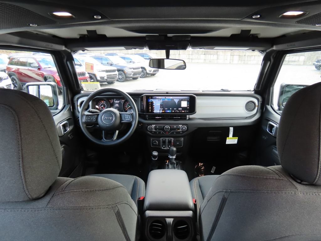 Quick Order Package 22B Sport, 3.45 Overall Top Gear Ratio, 4-Wheel Disc Brakes, 8 Speakers, ABS brakes, Air Conditioning, AM/FM radio: SiriusXM with 360L, Apple CarPlay/Android Auto, Aux Battery, Black 3-Piece Hard Top, Brake assist, Cloth Low-Back Bucket Seats, Compass, Delay-off headlights, Driver door bin, Driver vanity mirror, Dual front impact airbags, Dual front side impact airbags, Electronic Stability Control, Freedom Panel Storage Bag, Front anti-roll bar, Front Bucket Seats, Front Center Armrest w/Storage, Front fog lights, Front reading lights, Illuminated entry, Integrated roll-over protection, Low tire pressure warning, MOPAR All-Weather Floor Mats, No Soft Top, Non-Lock Fuel Cap w/o Discriminator, Normal Duty Suspension, Occupant sensing airbag, Outside temperature display, Overhead airbag, Panic alarm, ParkView Rear Back-Up Camera, Passenger door bin, Passenger vanity mirror, Power steering, Power windows, Radio data system, Radio: Uconnect 5 w/12.3" Display, Rear anti-roll bar, Rear reading lights, Rear Window Defroster, Rear Window Wiper/Washer, Remote keyless entry, Speed control, Steering wheel mounted audio controls, Stop-Start Dual Battery System, Tachometer, Telescoping steering wheel, Tilt steering wheel, Traction control, Trip computer, Variably intermittent wipers, and Wheels: 17" x 7.5" Black Steel Styled