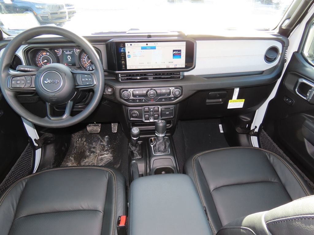 Quick Order Package 22B Sport, 12.3" Touchscreen Display, 3.45 Overall Top Gear Ratio, 4-Wheel Disc Brakes, 4G LTE Wi-Fi Hot Spot, 8 Speakers, ABS brakes, Air Conditioning, AM/FM radio: SiriusXM with 360L, Apple CarPlay, Apple CarPlay/Android Auto, Aux Battery, Black 3-Piece Hard Top, Black MOPAR Perforated Leather, Brake assist, Compass, Connectivity - US/Canada, Delay-off headlights, Driver door bin, Driver vanity mirror, Dual front impact airbags, Dual front side impact airbags, Electronic Stability Control, For More Info, Call 800-643-2112, Freedom Panel Storage Bag, Front anti-roll bar, Front Bucket Seats, Front Center Armrest w/Storage, Front fog lights, Front reading lights, Google Android Auto, Illuminated entry, Integrated Center Stack Radio, Integrated roll-over protection, Low tire pressure warning, MOPAR All-Weather Floor Mats, No Soft Top, Non-Lock Fuel Cap Without Discriminator, Normal Duty Suspension, Occupant sensing airbag, Outside temperature display, Overhead airbag, Panic alarm, ParkView Rear Back-Up Camera, Passenger door bin, Passenger vanity mirror, Power steering, Power windows, Radio data system, Radio: Uconnect 5 with 12.3" Display, Rear anti-roll bar, Rear reading lights, Rear Window Defroster, Rear Window Wiper/Washer, Remote keyless entry, SiriusXM Radio Service, SiriusXM with 360L, Speed control, Split folding rear seat, Steering wheel mounted audio controls, Stop-Start Dual Battery System, Tachometer, Telescoping steering wheel, Tilt steering wheel, Traction control, Trip computer, Variably intermittent wipers, Wheels: 17" x 7.5" Black Steel Styled, and Wheels: 17" x 7.5" Gray