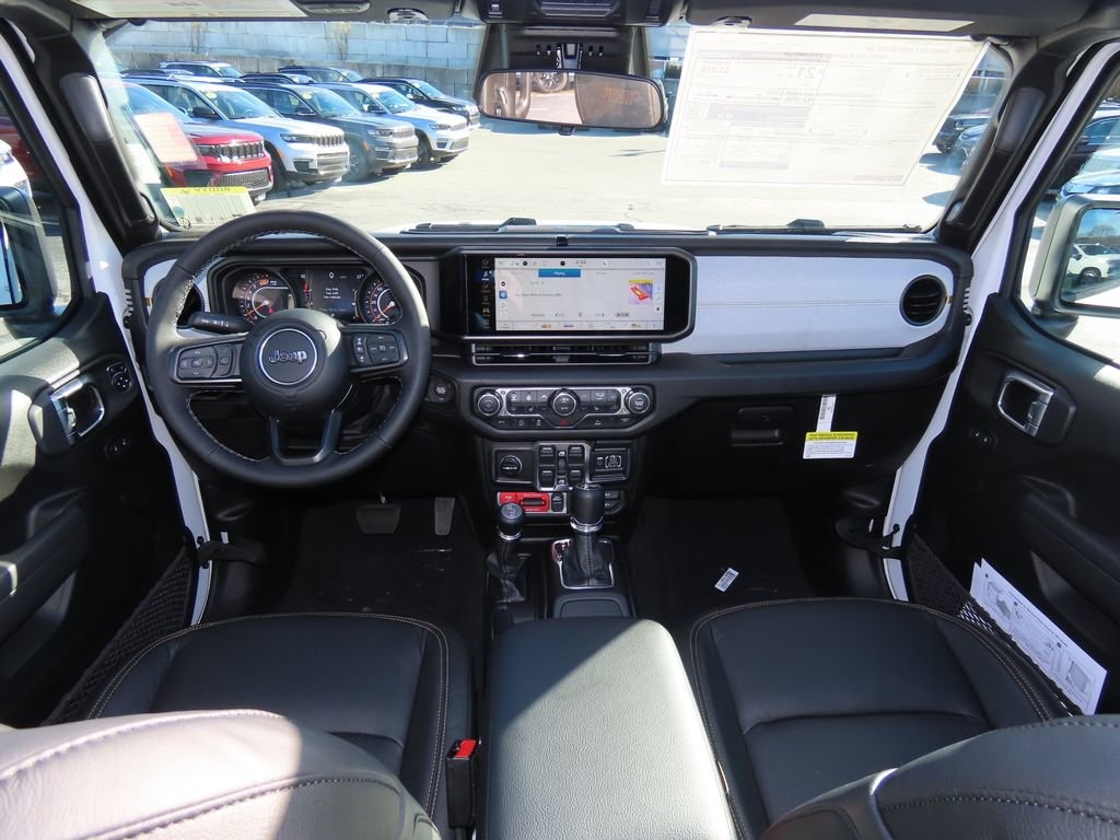 Convenience Group (2-Door Passive Entry, Front Door Locks, Air Conditioning with Auto Temp Control, Air Filtering, Cluster 7.0" TFT Color Display, Emergency/Assistance Call, Heated Front Seats, Heated Steering Wheel, and Universal Garage Door Opener), Quick Order Package 22W Willys (4-Wheel Drive Swing Gate Decal, 7 and 4 Pin Wiring Harness, Advanced Brake Assist, Automatic Headlamps, Auxiliary Switches, Black Grille, Class II Receiver Hitch, Conventional Differential Front Axle, Corning Gorilla Glass, Dana M210 Wide HD Tube Front Axle, Dana M220 Wide Rear Axle, Daytime Running Lamps LED Accents, Deep Tint Sunscreen Windows, E-Locker Rear Axle, Enhanced Adaptive Cruise Control, Front LED Fog Lamps, Full Speed Forward Collision Warning Plus, Injection Molded Black Rear Bumper, LED Premium Reflector Headlamps, Mold in Color Bumper with Gloss Black, Molded in Color Rubicon Highline Flare, MOPAR All-Weather Floor Mats, Off-Road Plus Mode, Power Heated Mirrors, Premium Wrapped Steering Wheel, Security Alarm, Sun Visors with Illuminated Vanity Mirrors, Wheels: 17" x 7.5" Painted Black, Willy's Suspension, and Willys Hood Decal), 12.3" Touchscreen Display, 4-Wheel Disc Brakes, 4G LTE Wi-Fi Hot Spot, 8 Speakers, ABS brakes, Air Conditioning, AM/FM radio: SiriusXM with 360L, Apple CarPlay, Apple CarPlay/Android Auto, Aux Battery, Black MOPAR Perforated Leather, Brake assist, Cloth Low-Back Bucket Seats, Compass, Connectivity - US/Canada, Delay-off headlights, Driver door bin, Driver vanity mirror, Dual front impact airbags, Dual front side impact airbags, Electronic Stability Control, For More Info, Call 800-643-2112, Front anti-roll bar, Front Bucket Seats, Front Center Armrest w/Storage, Front fog lights, Front reading lights, Google Android Auto, Illuminated entry, Integrated Center Stack Radio, Integrated roll-over protection, Low tire pressure warning, Non-Lock Fuel Cap Without Discriminator, Normal Duty Suspension, Occupant sensing airbag, Outside temperature display, Overhead airbag, Panic alarm, ParkView Rear Back-Up Camera, Passenger door bin, Passenger vanity mirror, Power steering, Power Top Quarter Window Storage Bag, Power windows, Radio data system, Radio: Uconnect 5 with 12.3" Display, Rear anti-roll bar, Rear reading lights, Rear Window Defroster, Rear Window Wiper/Washer, Remote keyless entry, Removable Rear Quarter Windows, SiriusXM Radio Service, SiriusXM with 360L, Sky 1-Touch Power Top, Speed control, Split folding rear seat, Steering wheel mounted audio controls, Stop-Start Dual Battery System, Tachometer, Telescoping steering wheel, Tilt steering wheel, Traction control, Trip computer, Variably intermittent wipers, and Wheels: 17" x 7.5" Black Steel Styled