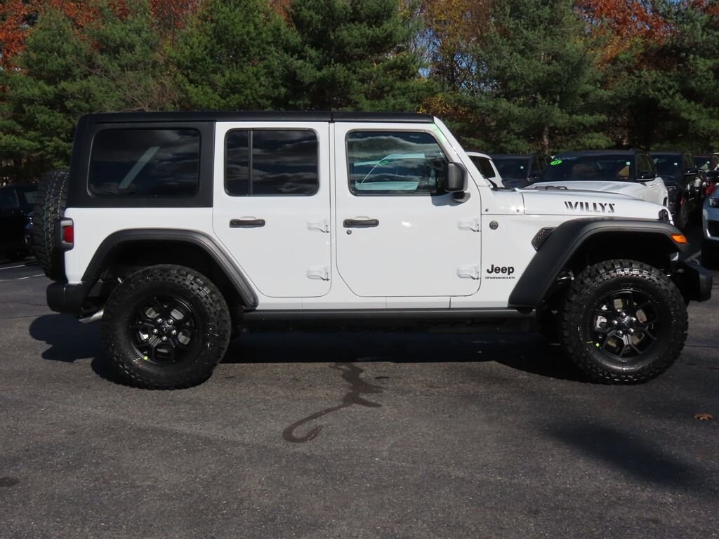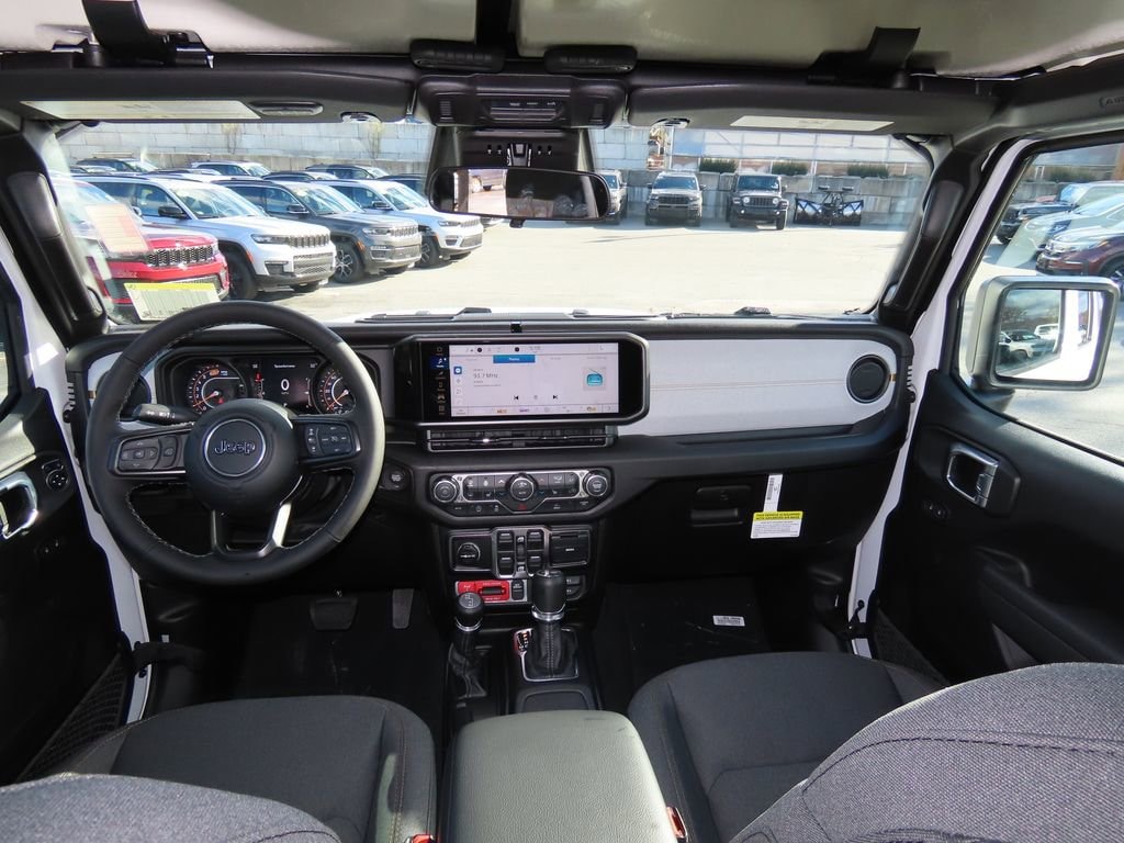 Convenience Group (2-Door Passive Entry, Front Door Locks, Air Conditioning with Auto Temp Control, Air Filtering, Cluster 7.0" TFT Color Display, Emergency/Assistance Call, Heated Front Seats, Heated Steering Wheel, and Universal Garage Door Opener), Quick Order Package 22W Willys (4-Wheel Drive Swing Gate Decal, 7 and 4 Pin Wiring Harness, Advanced Brake Assist, Automatic Headlamps, Auxiliary Switches, Black Grille, Class II Receiver Hitch, Conventional Differential Front Axle, Corning Gorilla Glass, Dana M210 Wide HD Tube Front Axle, Dana M220 Wide Rear Axle, Daytime Running Lamps LED Accents, Deep Tint Sunscreen Windows, E-Locker Rear Axle, Enhanced Adaptive Cruise Control, Front LED Fog Lamps, Full Speed Forward Collision Warning Plus, Injection Molded Black Rear Bumper, LED Premium Reflector Headlamps, Mold in Color Bumper with Gloss Black, Molded in Color Rubicon Highline Flare, MOPAR All-Weather Floor Mats, Off-Road Plus Mode, Power Heated Mirrors, Premium Wrapped Steering Wheel, Security Alarm, Sun Visors with Illuminated Vanity Mirrors, Wheels: 17" x 7.5" Painted Black, Willy's Suspension, and Willys Hood Decal), 12.3" Touchscreen Display, 4-Wheel Disc Brakes, 4G LTE Wi-Fi Hot Spot, 8 Speakers, ABS brakes, Air Conditioning, AM/FM radio: SiriusXM with 360L, Apple CarPlay, Apple CarPlay/Android Auto, Aux Battery, Black 3-Piece Hard Top, Brake assist, Cloth Low-Back Bucket Seats, Compass, Connectivity - US/Canada, Delay-off headlights, Driver door bin, Driver vanity mirror, Dual front impact airbags, Dual front side impact airbags, Electronic Stability Control, For More Info, Call 800-643-2112, Freedom Panel Storage Bag, Front anti-roll bar, Front Bucket Seats, Front Center Armrest w/Storage, Front fog lights, Front reading lights, Google Android Auto, Illuminated entry, Integrated Center Stack Radio, Integrated roll-over protection, Low tire pressure warning, Non-Lock Fuel Cap Without Discriminator, Normal Duty Suspension, Occupant sensing airbag, Outside temperature display, Overhead airbag, Panic alarm, ParkView Rear Back-Up Camera, Passenger door bin, Passenger vanity mirror, Power steering, Power windows, Radio data system, Radio: Uconnect 5 with 12.3" Display, Rear anti-roll bar, Rear reading lights, Rear Window Defroster, Rear Window Wiper/Washer, Remote keyless entry, SiriusXM Radio Service, SiriusXM with 360L, Speed control, Split folding rear seat, Steering wheel mounted audio controls, Stop-Start Dual Battery System, Tachometer, Telescoping steering wheel, Tilt steering wheel, Traction control, Trip computer, Variably intermittent wipers, and Wheels: 17" x 7.5" Black Steel Styled