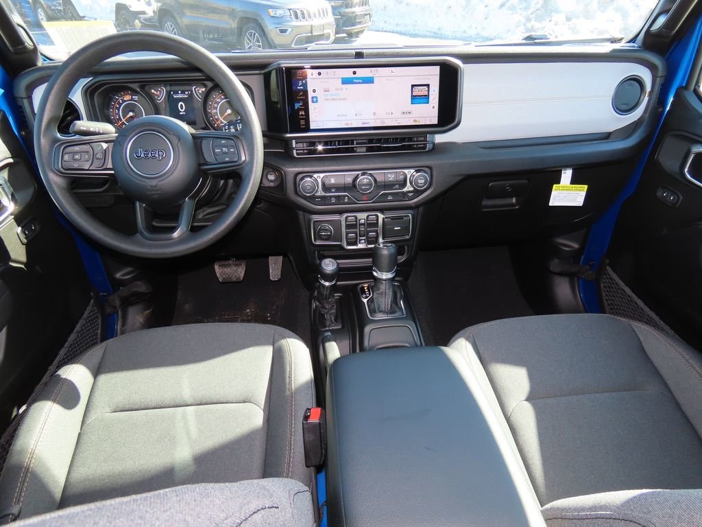 Quick Order Package 24B Sport, 12.3" Touchscreen Display, 3.45 Overall Top Gear Ratio, 4-Wheel Disc Brakes, 4G LTE Wi-Fi Hot Spot, 8 Speakers, ABS brakes, Air Conditioning, AM/FM radio: SiriusXM with 360L, Apple CarPlay, Apple CarPlay/Android Auto, Aux Battery, Black 3-Piece Hard Top, Brake assist, Compass, Connectivity - US/Canada, Delay-off headlights, Driver door bin, Driver vanity mirror, Dual front impact airbags, Dual front side impact airbags, Electronic Stability Control, For More Info, Call 800-643-2112, Freedom Panel Storage Bag, Front anti-roll bar, Front Bucket Seats, Front Center Armrest w/Storage, Front fog lights, Front reading lights, Google Android Auto, Illuminated entry, Integrated Center Stack Radio, Integrated roll-over protection, Low tire pressure warning, MOPAR All-Weather Floor Mats, No Soft Top, Non-Lock Fuel Cap Without Discriminator, Normal Duty Suspension, Occupant sensing airbag, Outside temperature display, Overhead airbag, Panic alarm, ParkView Rear Back-Up Camera, Passenger door bin, Passenger vanity mirror, Power steering, Power windows, Radio data system, Radio: Uconnect 5 with 12.3" Display, Rear anti-roll bar, Rear reading lights, Rear Window Defroster, Rear Window Wiper/Washer, Remote keyless entry, SiriusXM Radio Service, SiriusXM with 360L, Speed control, Split folding rear seat, Steering wheel mounted audio controls, Stop-Start Dual Battery System, Tachometer, Telescoping steering wheel, Tilt steering wheel, Traction control, Trip computer, Variably intermittent wipers, and Wheels: 17" x 7.5" Black Steel Styled