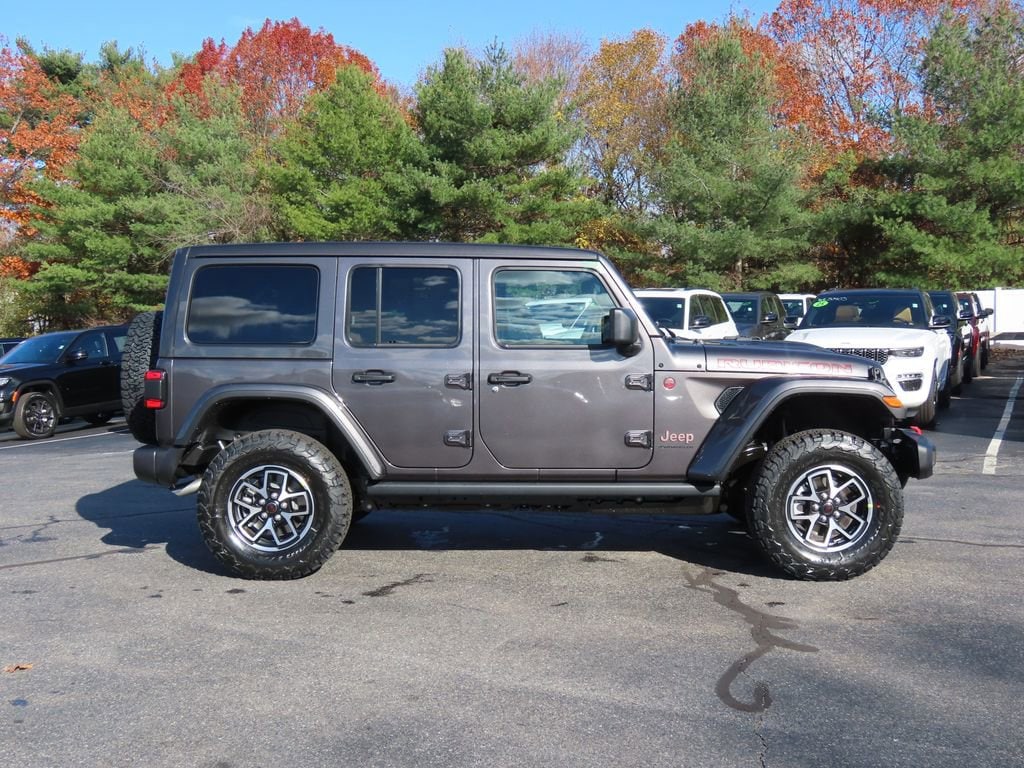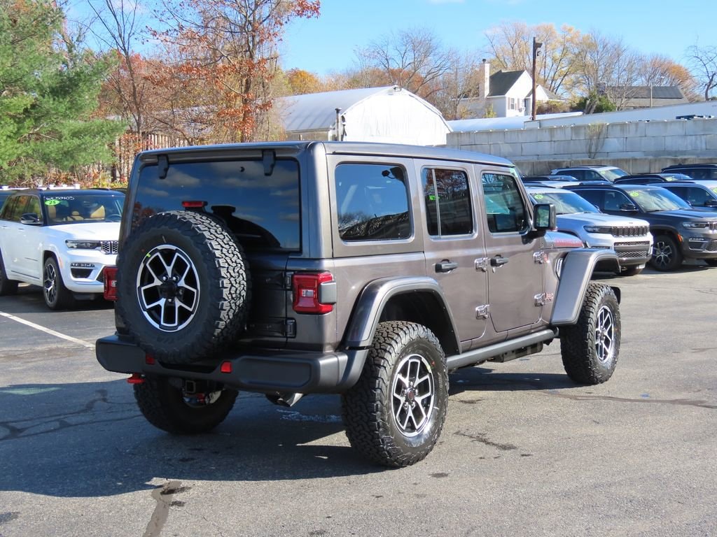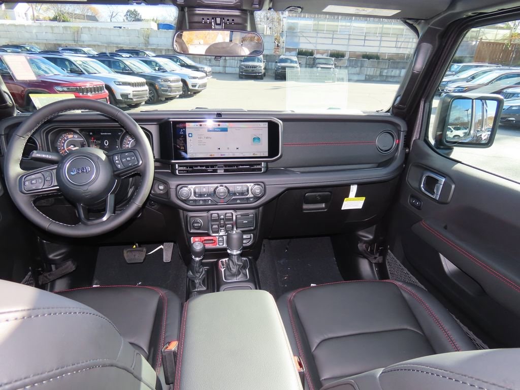 Convenience Group (Heated Front Seats, Heated Steering Wheel, and Universal Garage Door Opener), Quick Order Package 22R Rubicon, 12.3" Touchscreen Display, 4-Wheel Disc Brakes, 4.10 Rear Axle Ratio, 4G LTE Wi-Fi Hot Spot, 8 Speakers, ABS brakes, Air Conditioning, Alloy wheels, AM/FM radio: SiriusXM with 360L, Apple CarPlay, Apple CarPlay/Android Auto, Automatic temperature control, Aux Battery, Auxiliary Switches, Body Color Rubicon Highline Flare, Brake assist, Class II Receiver Hitch, Cloth Low-Back Bucket Seats, Compass, Connectivity - US/Canada, Delay-off headlights, Driver door bin, Driver vanity mirror, Dual front impact airbags, Dual front side impact airbags, Electronic Stability Control, Emergency communication system: Jeep Connect, For More Info, Call 800-643-2112, Front anti-roll bar, Front Bucket Seats, Front Center Armrest w/Storage, Front dual zone A/C, Front fog lights, Front License Plate Bracket, Front reading lights, Fully automatic headlights, Google Android Auto, Heated door mirrors, Illuminated entry, Integrated Center Stack Radio, Integrated roll-over protection, Low tire pressure warning, MOPAR All-Weather Floor Mats, Non-Lock Fuel Cap Without Discriminator, Occupant sensing airbag, Outside temperature display, Overhead airbag, Panic alarm, ParkView Rear Back-Up Camera, Passenger door bin, Passenger vanity mirror, Performance Suspension, Power door mirrors, Power steering, Power Top Quarter Window Storage Bag, Power windows, Radio data system, Radio: Uconnect 5 with 12.3" Display, Rear anti-roll bar, Rear reading lights, Rear Window Defroster, Rear Window Wiper/Washer, Remote keyless entry, Removable Rear Quarter Windows, Security system, SiriusXM Radio Service, SiriusXM with 360L, Sky 1-Touch Power Top, Speed control, Split folding rear seat, Steering wheel mounted audio controls, Stop-Start Dual Battery System, Tachometer, Telescoping steering wheel, Tilt steering wheel, Traction control, Trip computer, Variably intermittent wipers, Voltmeter, and Wheels: 17" x 7.5" Machined/Painted Black