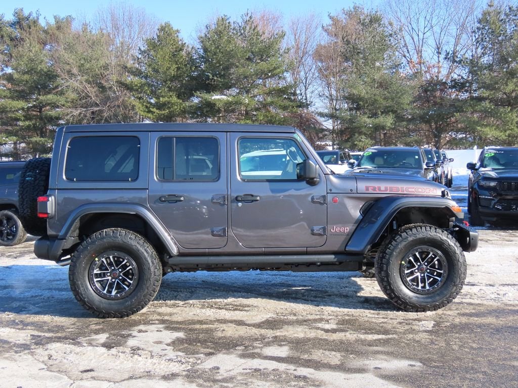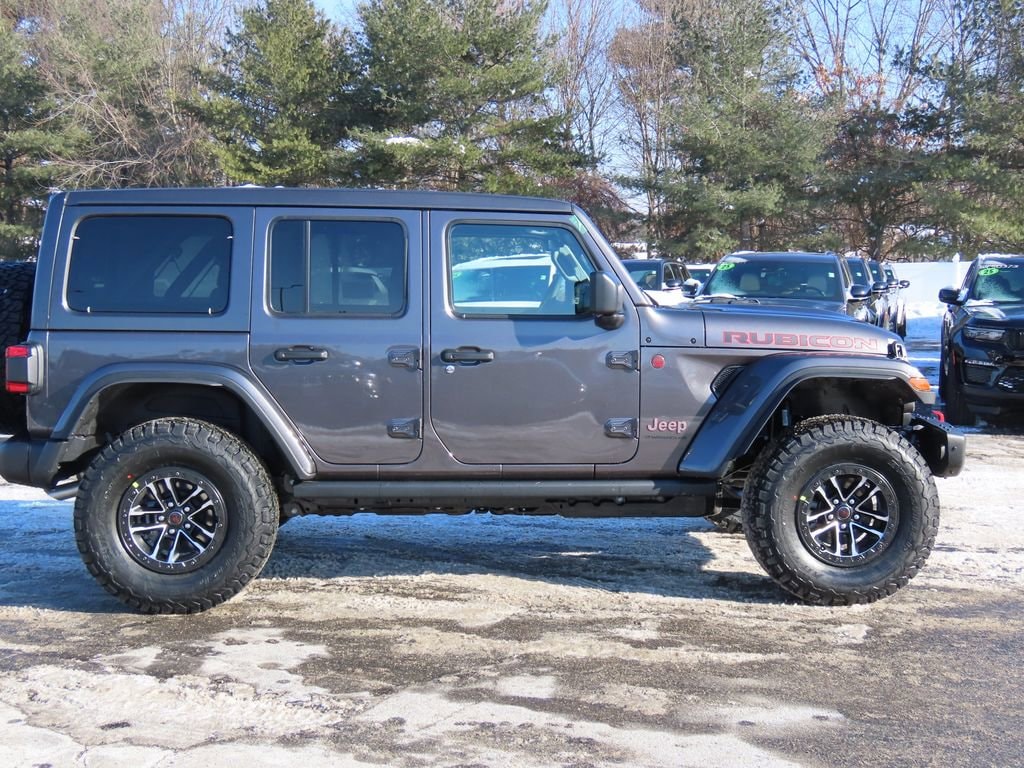 Quick Order Package 24Y Rubicon X (12.3" Touchscreen Display, 4G LTE Wi-Fi Hot Spot, Acoustic Front Seat Area Carpet, Acoustic Laminated Front Door Glass, Alpine Premium Audio System, Apple CarPlay, Auto High Beam Headlamp Control, Auto-Dimming Rear-View Mirror, Blind Spot and Cross Path Detection, Body Color 3-Piece Hard Top, Body Color Rubicon Highline Flare, Connected Travel and Traffic Services, Connectivity - US/Canada, Freedom Panel Storage Bag, Google Android Auto, HD Radio, Heated Front Seats, Heated Steering Wheel, Integrated Off-Road Camera, Integrated Voice Command with Bluetooth, Leather Wrapped Park Brake Handle, Leather Wrapped Shift Knob, MOPAR Hardtop Headliner, Nappa Leather Seats, No Soft Top, ParkSense Rear Park Assist System, Power 4-Way Driver Lumbar Adjust, Power 4-Way Passenger Lumbar Adjust, Power Adjust 8-Way Driver Seat, Power Adjust 8-Way Front Passenger Seat, Premium Door Trim Panel, Radio: Uconnect 5 Navigation with 12.3" Display, Rear Window Defroster, Rear Window Wiper/Washer, SiriusXM with 360L, Steel Front Bumper, Steel Rear Bumper, and Universal Garage Door Opener), Steel Performance Hood Package (Performance Hood), Trailer Tow and Auxiliary Switch Group (Auxiliary Switches and Class II Receiver Hitch), Trailer Tow Prep Package, 35" Tire Suspension, 4-Wheel Disc Brakes, 8 Speakers, ABS brakes, Air Conditioning, Alloy wheels, AM/FM radio: SiriusXM with 360L, Apple CarPlay/Android Auto, Automatic temperature control, Aux Battery, Brake assist, Cloth Low-Back Bucket Seats, Compass, Delay-off headlights, Driver door bin, Driver vanity mirror, Dual front impact airbags, Dual front side impact airbags, Electronic Stability Control, Emergency communication system: Jeep Connect, For More Info, Call 800-643-2112, Front anti-roll bar, Front Bucket Seats, Front Center Armrest w/Storage, Front dual zone A/C, Front fog lights, Front License Plate Bracket, Front reading lights, Fully automatic headlights, Heated door mirrors, Illuminated entry, Integrated Center Stack Radio, Integrated roll-over protection, Low tire pressure warning, MOPAR All-Weather Floor Mats, MOPAR Hinge-Gate Reinforcement, Non-Lock Fuel Cap Without Discriminator, Occupant sensing airbag, Outside temperature display, Overhead airbag, Panic alarm, ParkView Rear Back-Up Camera, Passenger door bin, Passenger vanity mirror, Performance Suspension, Power door mirrors, Power steering, Power Top Quarter Window Storage Bag, Power windows, Radio data system, Radio: Uconnect 5 with 12.3" Display, Rear anti-roll bar, Rear reading lights, Remote keyless entry, Removable Rear Quarter Windows, Security system, SiriusXM Radio Service, Sky One-Touch Power Top, Speed control, Split folding rear seat, Steering wheel mounted audio controls, Stop-Start Dual Battery System, Tachometer, Telescoping steering wheel, Tilt steering wheel, Traction control, Trip computer, Variably intermittent wipers, Voltmeter, Wheels: 17" x 7.5" Machined/Painted Black, and Wheels: 17" x 8" Machined with Black Pockets