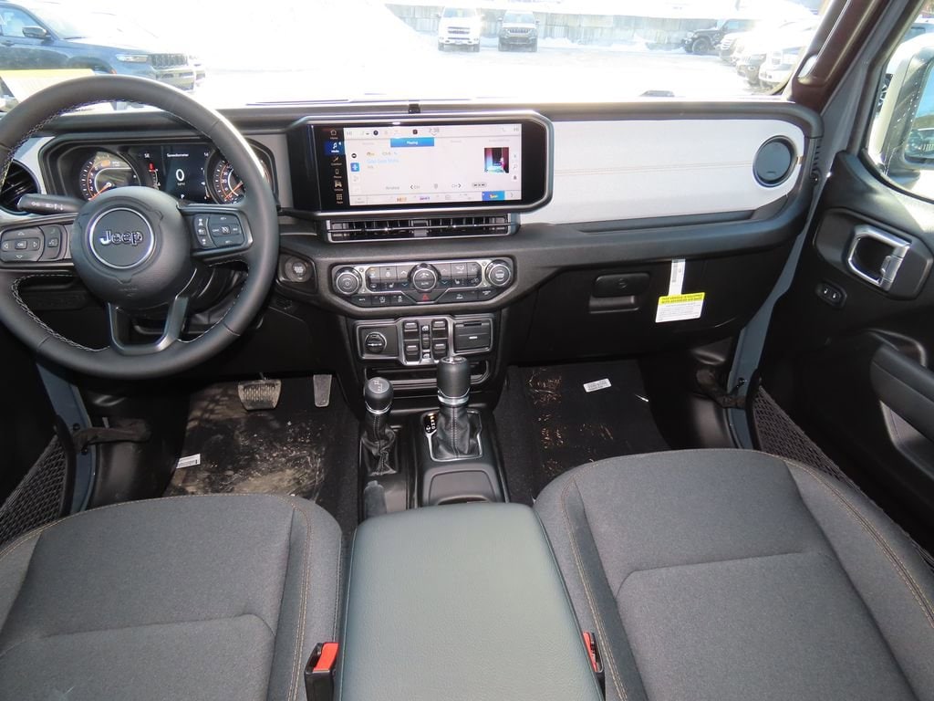 Convenience Group (2-Door Passive Entry, Front Door Locks, Air Conditioning with Auto Temp Control, Air Filtering, Cluster 7.0" TFT Color Display, Emergency/Assistance Call, Heated Front Seats, Heated Steering Wheel, and Universal Garage Door Opener), LED Headlamp and Fog Lamp Group (Front LED Fog Lamps and LED Premium Reflector Headlamps), Quick Order Package 24S Sport S (Advanced Brake Assist, Automatic Headlamps, Corning Gorilla Glass, Deep Tint Sunscreen Windows, Enhanced Adaptive Cruise Control, Full Speed Forward Collision Warning Plus, Power Heated Mirrors, Premium Wrapped Steering Wheel, Security Alarm, Sun Visors with Illuminated Vanity Mirrors, and Wheels: 17" x 7.5" Gray), 12.3" Touchscreen Display, 3.45 Overall Top Gear Ratio, 4-Wheel Disc Brakes, 4G LTE Wi-Fi Hot Spot, 8 Speakers, ABS brakes, Air Conditioning, AM/FM radio: SiriusXM with 360L, Apple CarPlay, Apple CarPlay/Android Auto, Aux Battery, Black 3-Piece Hard Top, Brake assist, Compass, Connectivity - US/Canada, Delay-off headlights, Driver door bin, Driver vanity mirror, Dual front impact airbags, Dual front side impact airbags, Electronic Stability Control, For More Info, Call 800-643-2112, Freedom Panel Storage Bag, Front anti-roll bar, Front Bucket Seats, Front Center Armrest w/Storage, Front fog lights, Front reading lights, Google Android Auto, Illuminated entry, Integrated Center Stack Radio, Integrated roll-over protection, Low tire pressure warning, MOPAR All-Weather Floor Mats, No Soft Top, Non-Lock Fuel Cap Without Discriminator, Normal Duty Suspension, Occupant sensing airbag, Outside temperature display, Overhead airbag, Panic alarm, ParkView Rear Back-Up Camera, Passenger door bin, Passenger vanity mirror, Power steering, Power windows, Radio data system, Radio: Uconnect 5 with 12.3" Display, Rear anti-roll bar, Rear reading lights, Rear Window Defroster, Rear Window Wiper/Washer, Remote keyless entry, SiriusXM Radio Service, SiriusXM with 360L, Speed control, Split folding rear seat, Steering wheel mounted audio controls, Stop-Start Dual Battery System, Tachometer, Telescoping steering wheel, Tilt steering wheel, Traction control, Trip computer, Variably intermittent wipers, and Wheels: 17" x 7.5" Black Steel Styled