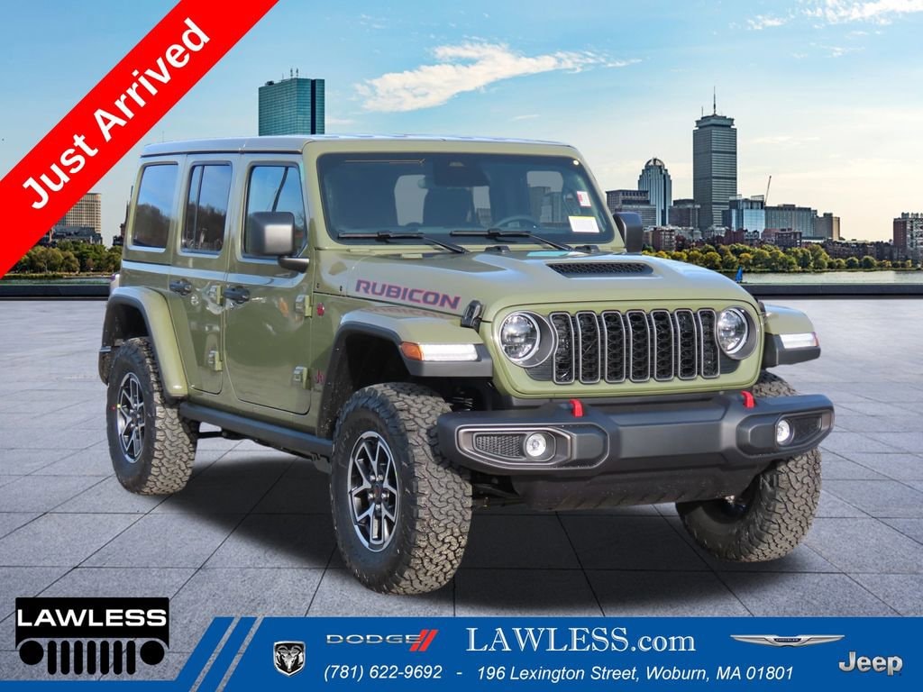 Convenience Group (Heated Front Seats, Heated Steering Wheel, and Universal Garage Door Opener), Quick Order Package 24R Rubicon, 12.3" Touchscreen Display, 4-Wheel Disc Brakes, 4.10 Rear Axle Ratio, 4G LTE Wi-Fi Hot Spot, 8 Speakers, ABS brakes, Air Conditioning, Alloy wheels, AM/FM radio: SiriusXM with 360L, Apple CarPlay, Apple CarPlay/Android Auto, Automatic temperature control, Aux Battery, Auxiliary Switches, Body Color 3-Piece Hard Top, Body Color Rubicon Highline Flare, Brake assist, Class II Receiver Hitch, Cloth Low-Back Bucket Seats, Compass, Connectivity - US/Canada, Delay-off headlights, Driver door bin, Driver vanity mirror, Dual front impact airbags, Dual front side impact airbags, Electronic Stability Control, Emergency communication system: Jeep Connect, For More Info, Call 800-643-2112, Freedom Panel Storage Bag, Front anti-roll bar, Front Bucket Seats, Front Center Armrest w/Storage, Front dual zone A/C, Front fog lights, Front License Plate Bracket, Front reading lights, Fully automatic headlights, Google Android Auto, Heated door mirrors, Illuminated entry, Integrated Center Stack Radio, Integrated roll-over protection, Low tire pressure warning, MOPAR All-Weather Floor Mats, Non-Lock Fuel Cap Without Discriminator, Occupant sensing airbag, Outside temperature display, Overhead airbag, Panic alarm, ParkView Rear Back-Up Camera, Passenger door bin, Passenger vanity mirror, Performance Suspension, Power door mirrors, Power steering, Power windows, Radio data system, Radio: Uconnect 5 with 12.3" Display, Rear anti-roll bar, Rear reading lights, Rear Window Defroster, Rear Window Wiper/Washer, Remote keyless entry, Security system, SiriusXM Radio Service, SiriusXM with 360L, Speed control, Split folding rear seat, Steering wheel mounted audio controls, Stop-Start Dual Battery System, Tachometer, Telescoping steering wheel, Tilt steering wheel, Traction control, Trip computer, Variably intermittent wipers, Voltmeter, and Wheels: 17" x 7.5" Machined/Painted Black