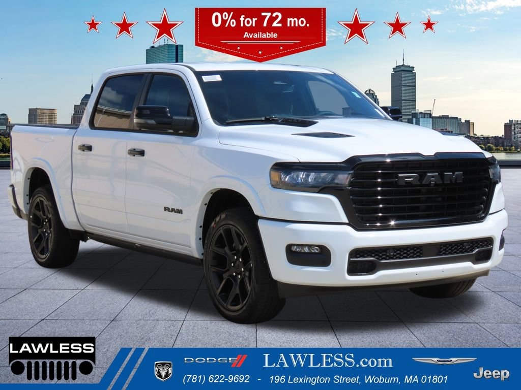 Bed Utility Group (MOPAR 4 Adjustable Cargo Tie-Down Hooks and MOPAR Spray In Bedliner), Laramie Level 2 Equipment Group (14.4" Touchscreen Display, 4G LTE Wi-Fi Hot Spot, Apple CarPlay, Cluster 12" TFT Color Display, Connected Travel & Traffic Services, Connectivity - US/Canada, Google Android Auto, GPS Antenna Input, GPS Navigation, harman/kardon 19 Speaker Premium Sound, HD Radio, Integrated Voice Command w/Bluetooth, Power Tailgate, Radio: Uconnect 5 Nav w/14.4" Display, Rain Sensitive Windshield Wipers, SiriusXM w/360L, and USB Host Flip), Night Edition (#1 Seat Foam Cushion, 3 Rear Seat Head Restraints, 4 Way Front Headrests, Accent Color Door Handles, Accent Color Premium Power Mirrors, Accent Color Tailgate Handle, Anti-Spin Differential Rear Axle, Auto Power-Folding Mirrors, Auto-Dimming Exterior Driver Mirror, Black Exterior Truck Badging, Black Headlamp Bezels, Black Interior Accents, Black Painted Exterior Mirrors Caps, Black Tail Lamp Bezels, Body Color Front Bumper, Body Color Rear Bumper w/Step Pads, Bucket Seats, Center Console Parts Module, Convex Wide-Angle Exterior Mirror Insert, Driver Seat Memory, Dual Exhaust w/Black Tips, Exterior Mirrors Approach Lamps, Exterior Mirrors Courtesy Lamps, Exterior Mirrors w/Heating Element, Exterior Mirrors w/Memory, Exterior Mirrors w/Supplemental Signals, Front Seat Back Map Pockets, Full Length Upgraded Floor Console, Grille Surround 3 Black Texture 2 Black, Heated Front Seats, Heated Second Row Seats, Heated Steering Wheel, Leather Trimmed Bucket Seats, Pirelli Brand Tires, Power 2-Way Driver Lumbar Adjust, Power 2-Way Passenger Lumbar Adjust, Power Adjust 8-Way Driver Seat, Power Adjust 8-Way Front Passenger Seat, Proximity Approach/Departure Lamps, RAM Grille Badge - Black, Rear 60/40 Folding Split Recline Seat, Sport Performance Hood, Ventilated Front Seats, and Wheels: 22" x 9" Forged Aluminum), Quick Order Package 21H Laramie, 10 Speakers, 3.55 Rear Axle Ratio, 3.92 Rear Axle Ratio, 33 Gallon Fuel Tank, 4-Wheel Disc Brakes, ABS brakes, Air Conditioning, Alloy wheels, AM/FM radio: SiriusXM with 360L, Apple CarPlay/Android Auto, Audio memory, Auto High-beam Headlights, Auto-dimming door mirrors, Auto-dimming Rear-View mirror, Automatic temperature control, Brake assist, Bumpers: chrome, Chrome Exterior Mirrors, Compass, Delay-off headlights, Driver door bin, Driver vanity mirror, Dual front impact airbags, Dual front side impact airbags, Electronic Stability Control, Front anti-roll bar, Front Center Armrest w/Storage, Front dual zone A/C, Front fog lights, Front License Plate Bracket, Front reading lights, Front wheel independent suspension, Fully automatic headlights, Garage door transmitter, Heated door mirrors, Heated front seats, Heated rear seats, Heated steering wheel, Illuminated entry, Leather steering wheel, Leather Trim 40/20/40 Bench Seat, Low tire pressure warning, Memory seat, MOPAR Front & Rear Rubber Floor Mats, Navigation System, Occupant sensing airbag, Outside temperature display, Overhead airbag, Overhead console, Panic alarm, ParkView Rear Back-Up Camera, Passenger door bin, Passenger vanity mirror, Power Deployable Running Boards, Power door mirrors, Power driver seat, Power passenger seat, Power steering, Power windows, Radio data system, Radio: Uconnect 5 Nav w/12.0" Display, RAM Grille Badge - Chrome, Rear anti-roll bar, Rear reading lights, Rear seat center armrest, Rear step bumper, Remote keyless entry, Security system, Speed control, Split folding rear seat, Steering whe Lawless Price does not include Tax, Title, Registration and Dealer Documentation Fee. Lawless Price includes: 10% Msrp -