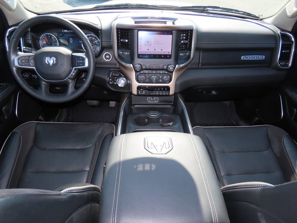Laramie Level I Equipment Group (2nd Row In Floor Storage Bins, Auto High Beam Headlamp Control, Blind Spot & Cross Path Detection, Foam Bottle Insert (Door Trim Panel), ParkSense Front/Rear Park Assist w/Stop, Rain Sensitive Windshield Wipers, and Remote Tailgate Release), Quick Order Package 25H Laramie, #1 Seat Foam Cushion, 10 Speakers, 3 Rear Seat Head Restraints, 3.21 Rear Axle Ratio, 3.92 Rear Axle Ratio, 4 Way Front Headrests, 4-Wheel Disc Brakes, 48V Belt Starter Generator, 4G LTE Wi-Fi Hot Spot, 8.4" Touchscreen Display, ABS brakes, Adjustable pedals, Air Conditioning, Alloy wheels, AM/FM radio: SiriusXM, Apple CarPlay, Apple CarPlay/Android Auto, Audio memory, Auto-dimming door mirrors, Auto-Dimming Exterior Driver Mirror, Auto-dimming Rear-View mirror, Automatic temperature control, Brake assist, Bumpers: chrome, Chrome Exterior Mirrors, Compass, Connectivity - US/Canada, Convex Wide-Angle Mirror Insert, Delay-off headlights, Dome Dual LED Reading Lamp, Driver door bin, Driver Seat Memory, Driver vanity mirror, Dual front impact airbags, Dual front side impact airbags, Dual-Pane Panoramic Sunroof, Electronic Stability Control, Exterior Mirrors Courtesy Lamps, Exterior Mirrors w/Heating Element, Exterior Mirrors w/Memory, Exterior Mirrors w/Supplemental Signals, For Details, Visit DriveUconnect.com, Front anti-roll bar, Front Center Armrest w/Storage, Front dual zone A/C, Front fog lights, Front License Plate Bracket, Front reading lights, Front Seat Back Map Pockets, Front wheel independent suspension, Fully automatic headlights, Garage door transmitter, Global Telematics Box Module (TBM), Google Android Auto, GPS Antenna Input, Heated door mirrors, Heated Front Seats, Heated front seats, Heated Steering Wheel, Heated steering wheel, Heavy-Duty Engine Cooling, Illuminated entry, Integrated Center Stack Radio, Leather steering wheel, Leather Trim 40/20/40 Bench Seat, LED Dome/Reading Lamp, Low tire pressure warning, Memory seat, MOPAR Front & Rear Rubber Floor Mats, Occupant sensing airbag, Outside temperature display, Overhead airbag, Overhead console, Panic alarm, ParkView Rear Back-Up Camera, Passenger door bin, Passenger vanity mirror, Pedal memory, Power 2-Way Driver Lumbar Adjust, Power 2-Way Passenger Lumbar Adjust, Power 8-Way Driver & Passenger Seats, Power door mirrors, Power driver seat, Power passenger seat, Power steering, Power windows, Power-Folding Mirrors, Radio data system, Radio: Uconnect 5 W w/8.4" Display, Rear 60/40 Folding Seat, Rear anti-roll bar, Rear seat center armrest, Rear step bumper, Rear Underseat Compartment Storage (DISC), Rear window defroster, Remote keyless entry, Security system, SiriusXM Radio Service, Speed control, Split folding rear seat, Steering wheel mounted audio controls, Tachometer, Telescoping steering wheel, Tilt steering wheel, Traction control, Trailer Brake Control, Trip computer, Turn signal indicator mirrors, Variably intermittent wipers, Ventilated Front Seats, Ventilated front seats, Voltmeter, Wheels: 18" x 8" Aluminum Base Painted, and Wheels: 20" x 9" Premium Paint/Polished